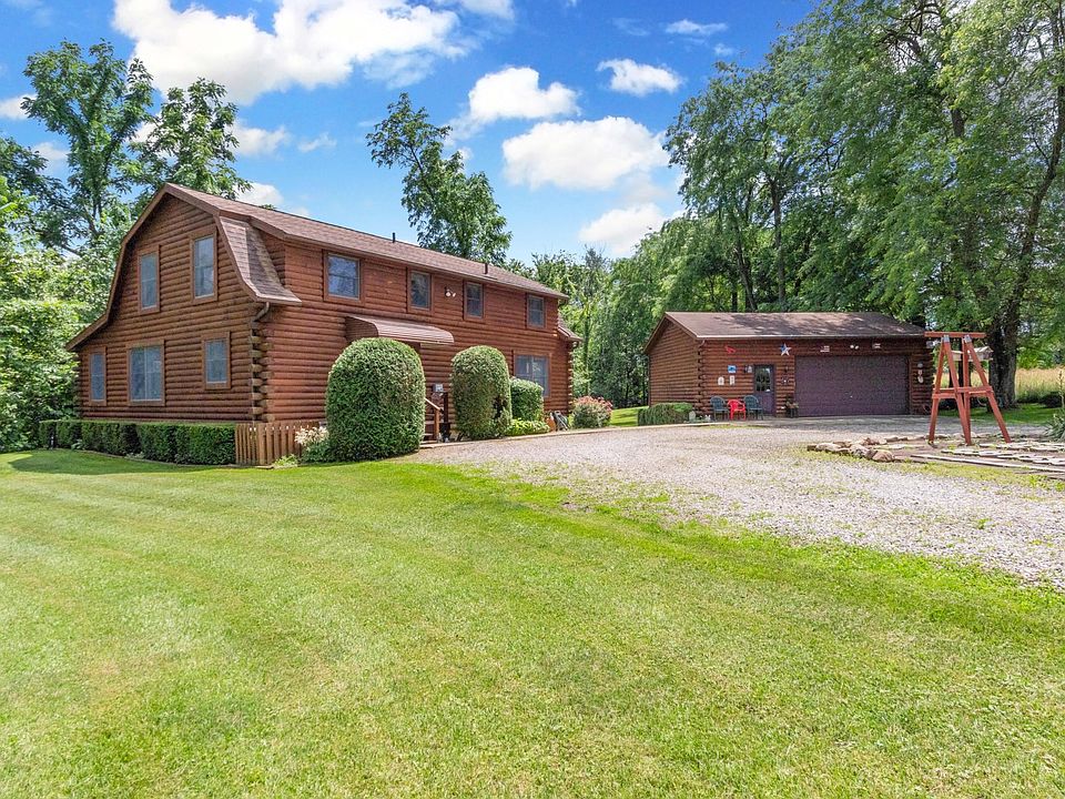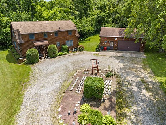 Come take a look at this lovely custom built log cabin nestled on a gorgeous 20 acre partially wooded lot w/ stream. This lovely well maintained home offers an extended 2 1/2 car garage w/ large work space, mounted radiant heat & electric water heater for hot & cold water. Inside offers spacious kitchen w/ plenty of cabinetry & counter space & brand new refrigerator, large dining room w/ beautiful views, family room w/ wood burning stove, Den, owners suite w/ private bath equipped w/ walk-in shower & new cultured granite sink, spacious bedrooms & first floor laundry room. Enjoy a covered patio overlooking this serene lot. The home is equipped w/ Whole house generator (2015), newer furnace and A/C (2010) , Hot water tank (2015) So much to offer!
