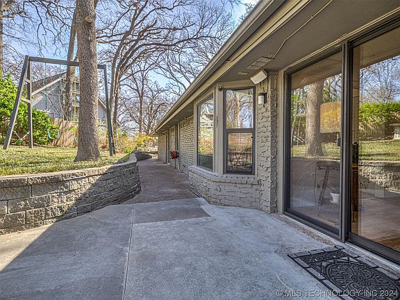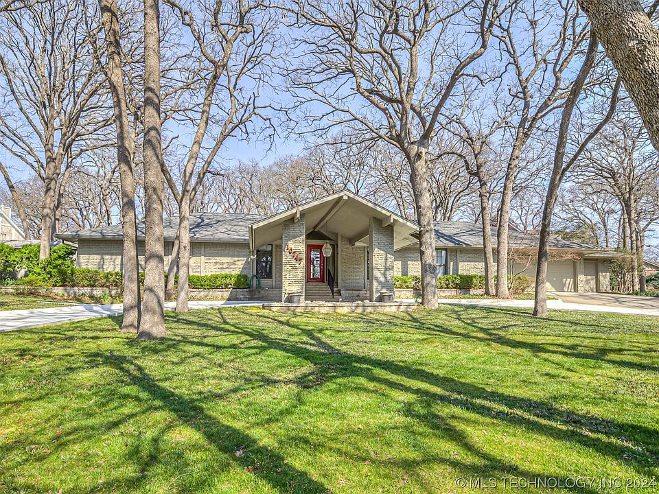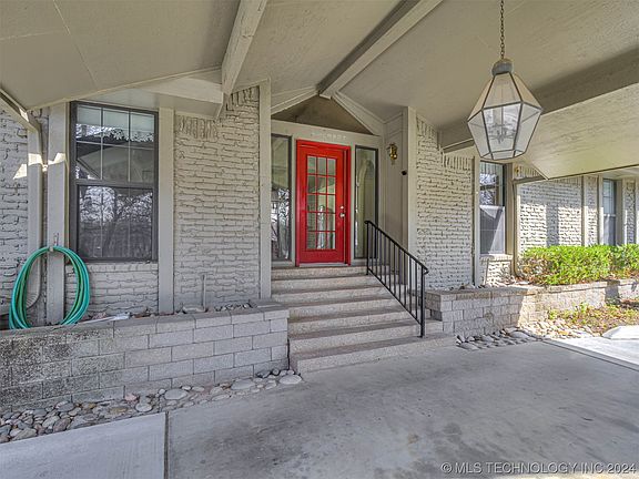 Love and live in the rolling hills of Shady Oaks Estates, where spacious lots and mature trees that are impressive and expected in this area of South Tulsa. This incredible gem is located on a corner lot with a brand new circular driveway, porte cochere and spacious three car garage. The living space is flexible with both formal dining and breakfast nook, as well as a welcoming main living space that overlooks the beautiful peacful and private back yard. Second living space could be game room, theater room (equipment stays) or flex office/living space. Sliding door out to back yard from primary bedroom plus three more bedrooms. Washer, Dryer and Refrigerator stay, new hot water. Jenks Schools.