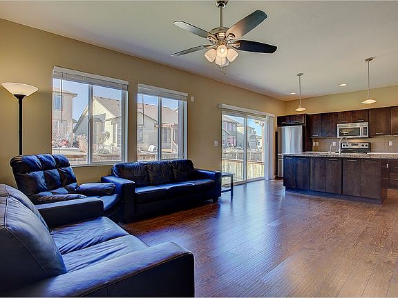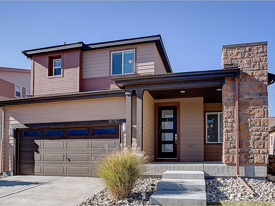 Meticulously maintained, stylish contemporary 4 BD/ 3.5 BH home, walking distance to desirable Reunion Rec Center and Park! Luminous L-shaped layout with wood laminate flooring and walk-out access to neatly groomed yard. Anchoring granite slab grand island, all S.S. appliances, sleek contemporary cabinets and finishes. All Bedroom Suites, including Owner's Retreat with walk-in closet and 4-piece Bath. Convenient upper level Laundry and secondary Bedrooms sharing Jack and Jill bath. Finished Basement offers the option of spacious Guest Suite with walk-in closet or Family/Media Room. Additional features include Nest Thermostat, frosted glass doors in Master Bath and oversized front porch! Neatly groomed fenced yard and 2-car garage. Incredible location, quick access to E-470, markets, restaurants and so much more! Hurry before it's gone!