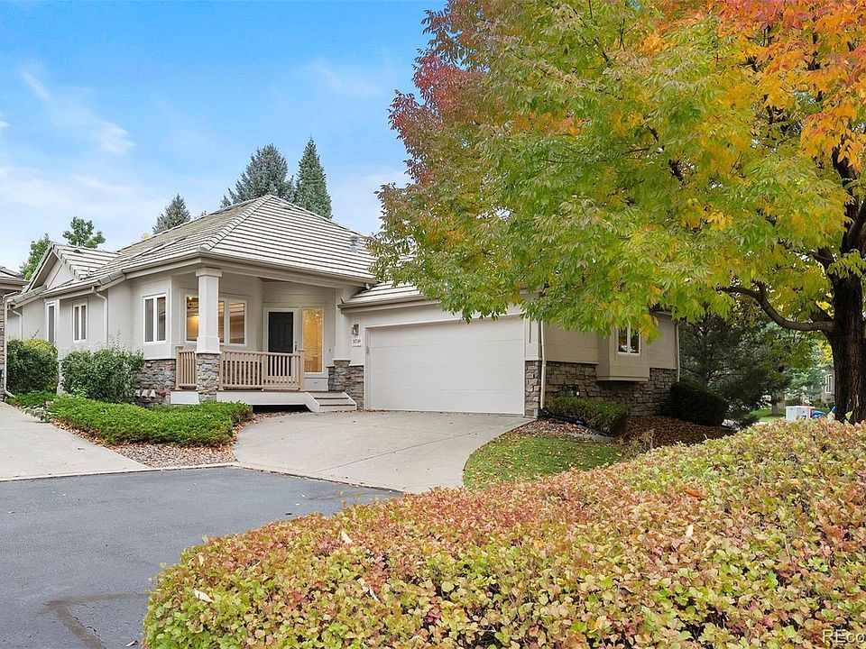 Discover comfort, style, and convenience in this updated home nestled in the sought-after Pointe at Legacy Ridge community. Step inside to find natural hardwood floors, fresh paint and carpet, new lighting and elegant plantation shutters—all creating a refined yet welcoming atmosphere. The open floor plan features volume ceilings and a remodeled eat-in kitchen with a bright skylight, crisp white cabinetry and wainscot paneling, and a generous island perfect for gathering. The adjacent dining area flows seamlessly into the inviting living room, where built-in bookshelves offer a place for your favorite art and treasured reads. A spacious primary suite with vaulted ceilings, a walk-in closet, and soaking tub on the main level, as well as second bedroom with direct access to a 3/4 bathroom. A laundry room on the main floor makes one-level living effortless. Downstairs, the expansive finished basement with two egress windows is light and open. Fresh carpet sets the stage for two additional bedrooms—one ideal for a home office, the other lives like a second primary suite with its own walk-in closet and direct access to a 3/4 bathroom. A generous storage and utility area provides plenty of space to keep everything organized. Outside, unwind on your private patio surrounded by mature trees and a lush green lawn. With a low-maintenance exterior, leaf filter gutter protection and HOA-covered landscaping and snow removal, you’ll have more time to simply enjoy life. 2-car attached garage. Residents of Legacy Ridge enjoy access to a premier golf course, clubhouse, pool, tennis courts, playgrounds, and scenic trails. Come experience this exceptional home—where every detail is designed for comfort and ease.
