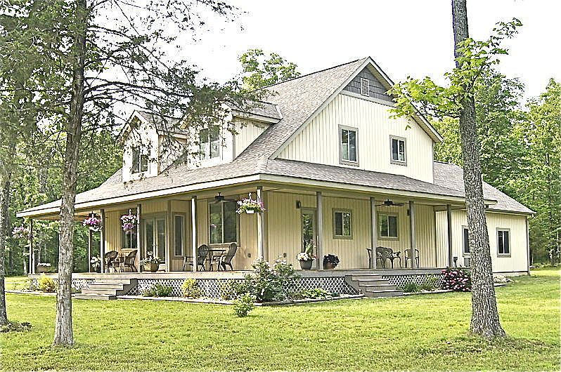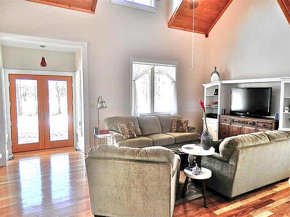 Just perfect! Newer constructed home nestled in 9+/- Beautifully Wooded Acres of land just 10 minutes out side of town. **Listed $25,000. Below very recent Appraisal** This home was built with pride and craftsmanship, featuring custom kitchen cabinets and concrete style tops, solid wood flooring and wrap around front porch to enjoy your ice tea on and watch the deer and turkey come visit. You get country living and solitude with the convenience of town near by. In addition there is an out building 12x20 with a porch and 8ft roof over hang. And if that's not enough there is a Bonus Room possible in the attic 22x14 in size. The home has lots of natural light pouring in from gorgeous entry door too window dormers/skylights in the roof.