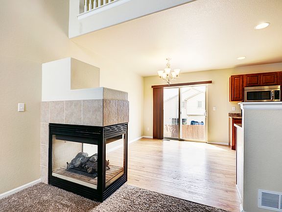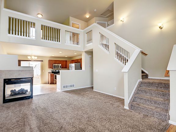 This beautiful 3 bedroom, 2.5 bath home has newer carpet, paint and landscaping. You can enjoy the 3-sided gas burning fireplace from the living room, Kitchen and dining room. The master suite is on the main level with a walk-in closet and double raised vanity in the master bathroom. Then you can head up stairs to the spacious loft and other two bedrooms. This property has a nice sized back yard and an un-finished basement. Also has automatic sprinklers, an A/C, and ADT security system already installed. The total finished sq ft is 1,536. This property is less the 15 min to get THROUGH the new gate 19 at Fort Carson. Please Contact Amber Myers with any questions (719) 633-HOME or direct (719) 502-0924.