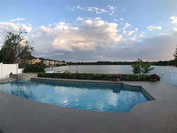 LAKEFRONT SUNSET VIEWS! This well-maintained, move-in-ready POOL (2011) home sits directly on the lake as your backyard. This home has all NEW WINDOWS with double pane and tilt in feature for easy cleaning. Upon entry, you'll find a formal dining/living room area with high vaulted ceilings & beautiful natural light. The UPDATED KITCHEN has ample cabinet & ample GRANITE counter space, island under cabinet lighting and pull out drawer systems PLUS NEW STAINLESS APPLIANCES being installed last week in April. The kitchen is open to a family room the boasts a large slider window showcasing the AMAZING LAKE VIEWS. The split bedroom concept has the master bedroom on the first level & loft and remaining bedrooms on the 2nd level. BONUS LOFT area could easily be used as a work/office area, or just as an additional living space upstairs for all to share. The home has a ton of upgrades such as 5.25" baseboards, crown molding in many rooms, NEW WINDOWS, & pride in ownership throughout. The HOA dues INCLUDED BASIC CABLE & INTERNET, common area maintenance including entry fountains and common area landscaping, playground area for families to enjoy, and use of a recreational area, as well as a lake doc and ramp. The location couldn't be better with it's ease and access to Lake Nona's new and upcoming Medical City, Major Employers such as Siemens Energy, UCF & Valencia campus's just a short drive away & it's location to 417