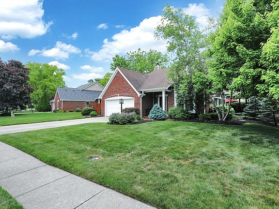 Pristine & oh so pretty is this lovely home in desirable Lexington Farms! Soaring ceilings & gorgeous hardwoods greet you! Fantastic floor plan with a large great room open to the dining room. Large updated kitchen with island is open to the family room. Plantation shutters throughout add to the class of the home. Fabulous wrap around deck with pergola & hot tub. Enjoy the view of the large pond! Updated primary bath & nice large bedroom. Loft can easily be converted to a third bedroom. You cannot beat this location either! Just steps from the Monon Center, Monon Trail & neighborhood tennis courts/pool. HVAC, water heater & softener 3 yrs, new gas ventless fireplace, garage w/Gator Guard epoxy floor. This is a find so come see it quickly!