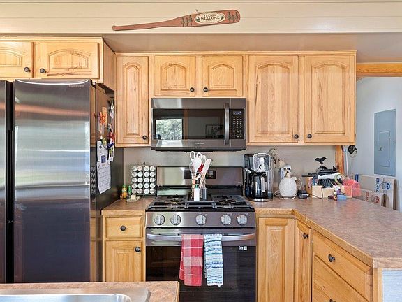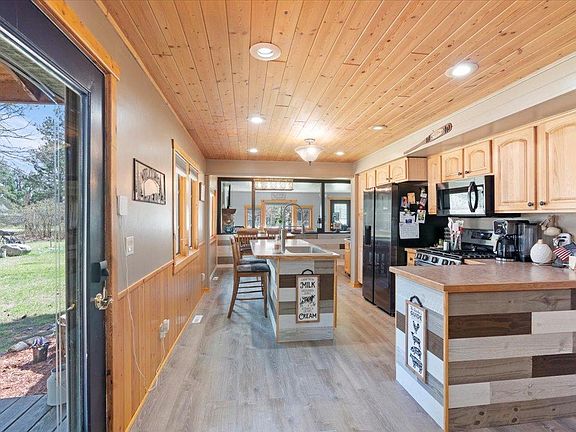 Escape to your tranquil haven nestled on 4 acres with views of Ossawinamakee Lake. This charming single-level home features a generous garage and a cozy bunkhouse. With new flooring throughout, revel in modern comfort and style. Whether you're relaxing in the inviting living room or cooking in the sleek kitchen, this home offers endless opportunities for leisure and entertainment. Enjoy the privacy and expansive land, perfect for outdoor adventures or simply soaking in the natural beauty that surrounds you.
