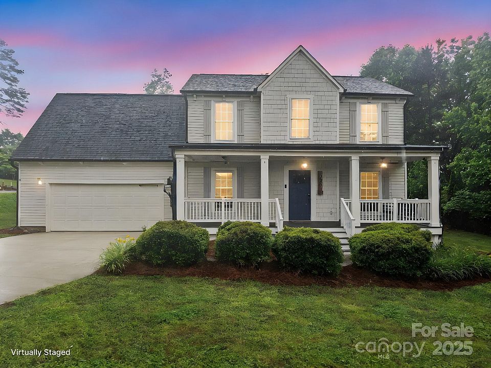 This gorgeous farmhouse style home greets you with an inviting front porch, open concept, an updated kitchen with a large "walnut" butcher block kitchen island that is absolutely perfect for entertaining! There are hardwood floors throughout the entire home and a "Great" room that truly lives up to its name with shiplap built-ins surrounding a cozy fireplace and an abundance of natural sunlight! Upstairs you will find 2 large bedrooms, a large primary bedroom with updated ensuite, and a bonus room with endless possibilities! Did I mention the backyard? Almost one acre! LAND and an outdoor shed just waiting for you to enjoy! (NEW Hot water tank 2025)