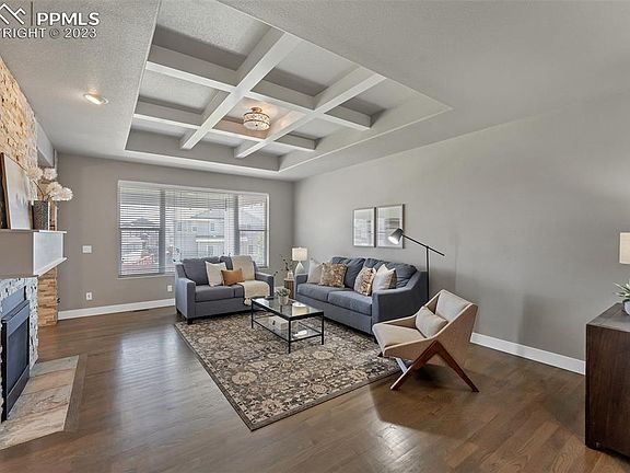 Welcome home this stunning 2 story home in the well desired Meridian Ranch neighborhood. As you enter the gorgeous hardwood floors throughout the main floor will take you into a spacious entrance and leads you into the open concept living room, dining room, and kitchen. The kitchen boasts a large island, granite countertops, large pantry adding a ton of storage space, stainless steel appliances and flows into the dining area that walk outs to extended concrete covered patio. This backyard is perfect for kids, and pets to run around while you can enjoy some shade on those hot summer days. Upstairs the master suite has a separate sitting area for you to end your long days with a nice book and start the fireplace, the large master bathroom has plenty of closet space, and a large separate shower. The loft adds additional living space for either an office, playroom or family room. The basement is unfinished and waiting for you to add your own personal touch. The amenities are also incredible with a pool, basketball courts, gym and close to walking trails, dog park and the schools are just minutes away. Don't miss out on all this home as to offer schedule your showing today!