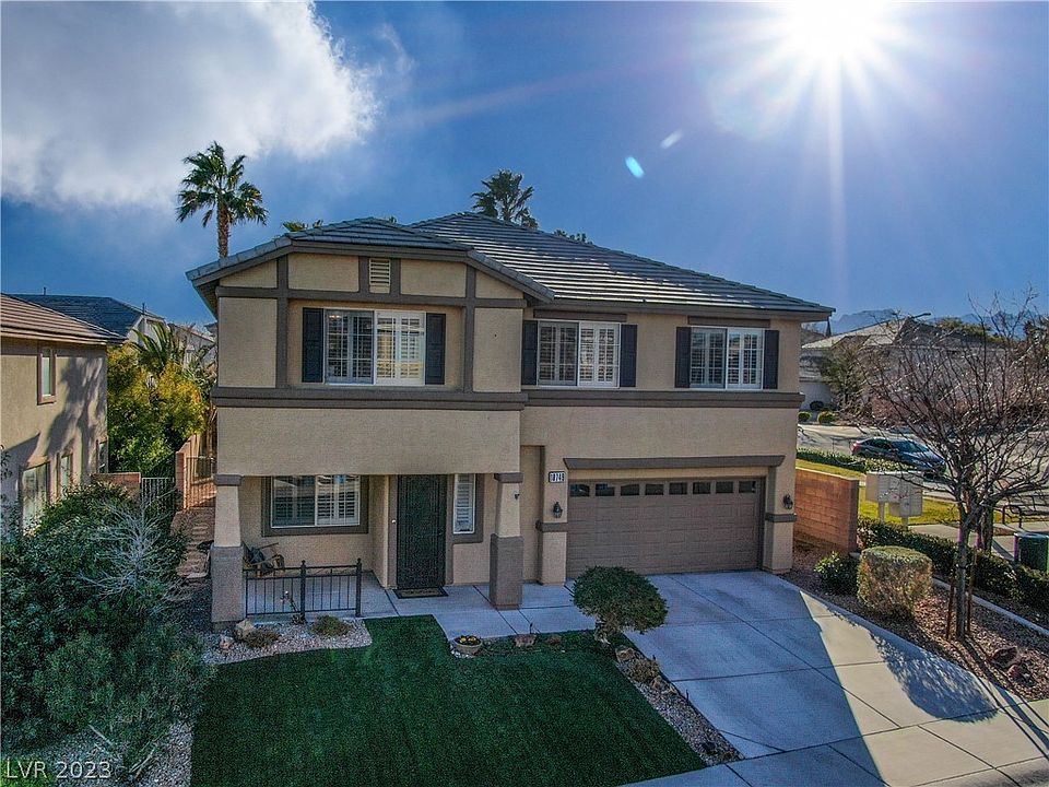 Congratulations, you found your next home! Close to Downtown Summerlin and Red Rock National Park. This Beautiful two-story corner lot, highly upgraded five bedrooms, and three bathroom home in Summerlin. Imagine entertaining in this fantastic private yard showplace with a pool. Chef's Kitchen with solid countertops, double ovens, and vaulted ceilings. Guest bedroom on the main floor. Extra large primary Bedroom and closet. Primary bathroom with garden tub and walk-in closet. Shutters throughout. Highly rated schools, A true must-see.