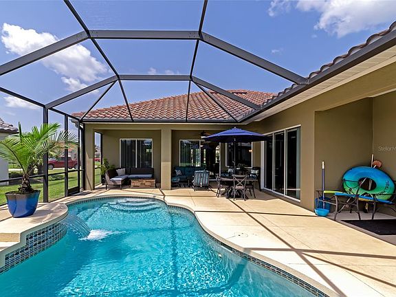 The Enclave at Country Meadows. This spacious home boasts 4BR, 3 BA with den AND 3 car tandem garage and a POOL Enjoy a large, eat-in kitchen with aquarium window in the breakfast nook overlooking the pool and lanai area. Very nice oversized fenced lot Come enjoy the elegance in this gated community with brick paver driveways and tile roofs. NO CDD fees and low HOA dues.