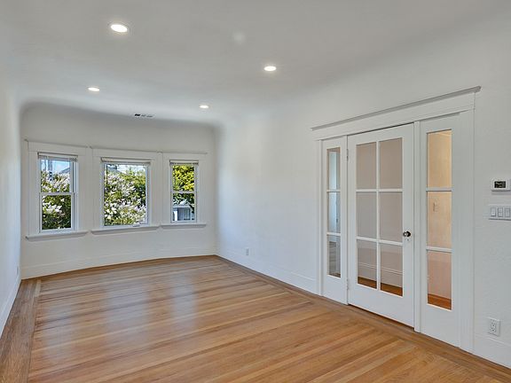 Prepare to be captivated by this newly renovated unit! Enjoy the perfect blend of traditional charm and the sleekness of contemporary design. Nestled in the heart of Emeryville, on the upper level of an elegant duplex, this meticulously crafted 3-bedroom, 2-bathroom home showcases 1,088 feet of livable space and includes 1-parking in rear. The gold chandelier and updated light fixtures cast a soft, ethereal glow onto the designer series wall covering, adding a designer touch to the stairwell. French doors lead you to the great room. You will be immediately drawn to the 9-foot coved ceilings, original crown molding over dual-pane windows and hardwood floors; a nod to the craftsmanship of a bygone era. Natural light sweeps throughout the grand, open floor plan and expands the formal living room and dining room for an open concept lifestyle. The kitchen boasts breathtaking Calcutta counter tops, Italian imported marble backsplash, a recess sink, garbage disposal and two-tone custom shaker cabinets outlined with crown molding. Modern brushed nickel fixtures were carefully selected for their beauty and refinement. Recess lighting and Santiago flooring adds a layer of warmth and richness to the home's interior. Brand-new energy efficient Bespoke Samsung stainless-steel appliance package which includes a Smart Gas Range with precision knobs & glass touch controls. 3-door French door Refrigerator with auto fill water pitcher and Top control Smart Dishwasher with auto release, storm wash plus and smart dry. Intelligently designed with convenience in mind, the abundance of storage space throughout the kitchen is sure to delight and impress the home chef. An in-unit laundry room is included for added convenience. Gas Dryer for energy efficiency. Three bedrooms offer versatility, whether you choose to transform them into a cozy guest room, a vibrant home office, or a playroom. Bedroom measurements: 1. Closest to the street near entry is 9ft X 11ft. 2. Center room is 11ft X 11ft. 3. Far back room near the laundry room is 13ft X 11ft The "Hollywood bathroom" is stunning! Styled with Italian marble, tile and chrome 2-handle single function square shower set including frameless shower door. The additional bathroom is electric! Beverly Marine tile covers the shower with frameless shower door. Floating vanity and flat matte hardware highlight the finish touches. The pet friendly building is well maintained with brand-new recessed lighting, electrical, copper plumbing, gas tank-less water heater and gas central furnace. Neighboring development adds sophistication to this cosmopolitan neighborhood. Nearby companies include Pixar, Novartis and Peet's Head Quarters. Get your daily exercise along the Emeryville Greenway and Bay trails. Join friends for brunch at Rudy's Can't Fail Cafe or one of the many diverse eateries at the Insta famous Arizmendi bakery, or gather organic produce at the Emery Weekly farmer's market. Close vicinity to Bay Street, The Public Market, Powell Street Plaza, IKEA and Berkeley Bowl. Short distance to top-rated schools EBGIS, ECDC and ECCL. Enjoy the benefits of having easy access with a WalkScore of 94, BikeScore of 95 and excellent transits. Only Minutes to MacArthur BART Station, Emery-go-around, UC Berkeley, downtown Berkeley, Oakland and San Francisco Bay Bridge. Centrally located near I-580/80/880/24. Strategic access throughout the Bay Area makes "Emeryville" the heart of the proper EastBay and one of the City's most desirable submarkets. Tenant is responsible for Gas & Electric, Cable and Internet service. Owner pays for water, trash and maintenance. The renter pays for gas & electric, cable and internet service. Pet friendly. No smoking allowed.