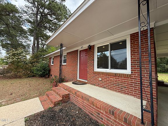 This low-maintenance brick ranch offers comfort, style, and convenience in a beautifully updated package. Renovated in 2018 by the previous owner, the home features a newer roof, shining hardwood floors throughout, tile in the kitchen and bath, and smooth ceilings with recessed lighting in every room. The bright kitchen connects seamlessly to the carport through a sliding door, making outdoor dining and grilling a breeze on the adjacent patio. Inside, you'll find three generously sized bedrooms and a full bath with an integrated laundry area. The covered front porch and spacious backyard provide ideal spots for relaxing or entertaining. Additional perks include storage in the carport and an HVAC system replaced in 2018 (per previous owner). Whether you're a first-time buyer or investor, this home offers consistent rental history and easy access to Fort Bragg.