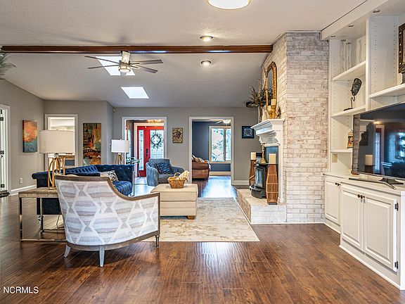 This lovingly maintained, classic brick home is nestled on a corner, DOUBLE LOT of Unit 13. With a partial water view, you've got it all & more right at home! Upon entrance, you are greeted by the sizable living room with wood burning fireplace, built-ins, and skylights making the space bright & open. With a floor plan made for functionality, use-as-you-choose spaces are abundant with formal dining/study, breakfast/ informal dining, and Carolina room. Step into the modern & bright kitchen with coffee bar, stainless steel appliances to include a double oven, mobile kitchen island and subway-tiled backsplash. French doors carry you into the spacious owner's suite with walk-in closet, ensuite with dual sinks, walk-in shower and vanity. Relax on the back deck or under the gazebo on your double slice of Pinehurst paradise. Just minutes from the Village of Pinehurst, enjoy shops, golf, dining, and more! PCC Membership is Transferrable with a Buyer Paid Transfer Fee!