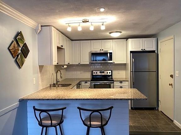 Bright 2 bdrm condo, heat/hot water included (tenant pays electric-cable-internet-phone). Enjoy the open floor plan with beautiful granite kitchen. Conveniently located near shopping, restaurants, tennis courts, playground and walking trails. Shared laundry room, parking, storage, landscaping and snow removal are included. Located on route 59 bus line and close to Elliot Stop (Green Line), routes 9 and 95.