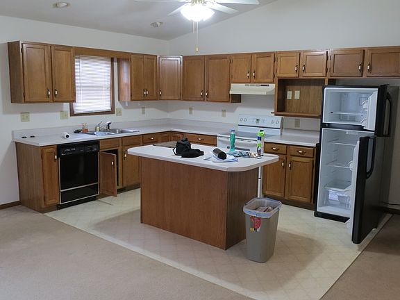Very nice 22-year-old condo close to the universities. It has 2 bedrooms and two bathrooms, one with a walk-in closet. There is a large kitchen, eating area. A living room has a skylight, vaulted ceiling, and an electric fireplace. Patio doors lead to a fenced in outside area with a patio. The 2-car garage is attached and includes a storage area. The roof, central heating and air conditioning, and refrigerator are all fairly new. The inside has been smoke and pet free. This would make an excellent starter home for a small family or a student.