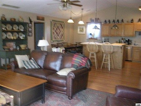 Beautiful country setting with 6 AC m/l of abundant flowers, trees & wildlife. Stocked pond as you enter the property. Great room with beautiful island in the K. All cabinets are roll out & stainless steel appliances stay. Pantry. Attractive flooring in great room. Attached oversized double garage has 220 V. & is plumbed for another bath. Rural water & a well. Very economical to heat & cool. Attractive fencing. Only 1/2 mile off paved road & close to casinos. Bring your animals & come to the country!!