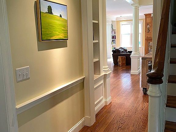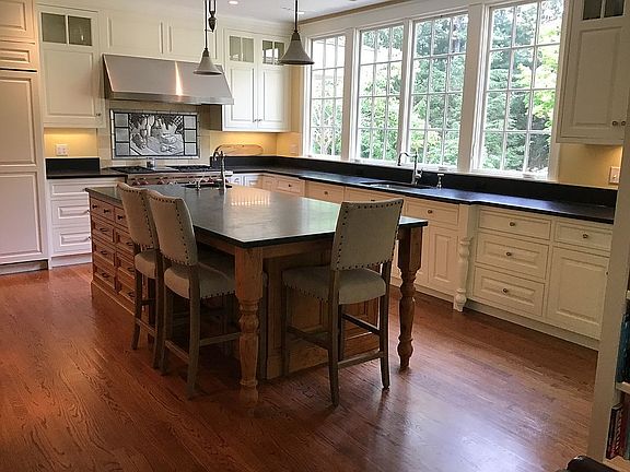 Colonial Farmhouse with recently expanded wrap around farmer's porch and deck with steps leading to expansively designed grounds. This home captures tremendous natural light from many over-sized windows. Overlooking a recently completed waterfall and koi pond, sweeping lawns, stonewalls & mature plantings and specimen trees. Extensive recent renovations include a new master bath and Jack and Jill bath, with Waterworks and Perrin & Rowe fixtures, marble flooring, marble counters and expanded windows. Redesigned by noted architect Alan Mayer, this home functions for today's lifestyle. High-end Chef's kitchen includes: Wolf dual fuel range with two ovens, Sub Zero side by side fridge, double Bosch dishwashers and antiqued Cambrian granite counters. Spacious island built from reclaimed chestnut wood topped with honed soapstone. Impressive family room with custom mill-work and fieldstone fireplace surround is flanked by breezy screened porch & sunroom dining room. Master retreat with newly installed mahogany deck and cable railing offering obstruction free views of the grounds. Newly renovated second floor laundry room with custom counters, custom tile floor, Waterstone faucet and Shaw's Farmer's sink as well as new machines. Private mezzanine bedroom suite, Au pair space w/ separate entrance, sizable finished lower level with endless options, cedar storage closet & so much more. A must see to experience the understated elegance. Recently finished renovations include: Master bath with Waterworks plumbing fixtures and lighting sconces. Marble floor with radiant heat. Marble counter top. Steam shower with bench. Rain head, shower head and handheld wand. Tedd Wood Cabinetry. Jack and Jill bath renovations include: Perrin & Rowe fixtures. Marble floor. Tedd Wood Cabinets. Marble counter. New second floor laundry room: New washer and dryer. Custom counter top. Tedd Wood Cabinets. Waterstone pulldown fixture and Shaw farmer's sink. Field stone fireplace surrounds on both fireplaces and lower level gas stove. Extended wrap around farmer's porch with large bluestone patio, bluestone BBQ patio, built-in Napoleon Grill with ambient lighting and electrical outlets. Waterfall with pond, remote controlled water flow and electrical service to add ambient lighting. Extremely extensive landscaping improvements, including 32 full sized evergreen trees of three species (18'-25') creating complete privacy. Transplanted rhododendrons that are decades old. Extensive variety of ornamental trees have been added. Hardscape and landscape finishes include expansive walls, granite steps and regraded yard and lawn. New mahogany main entrance and pedestrian garage door. New and enlarged state of the art sprinkler system. Cobblestone driveway skirt. New built-in security system with smoke and fire detection systems, with cell and battery powered radio back-up communication.