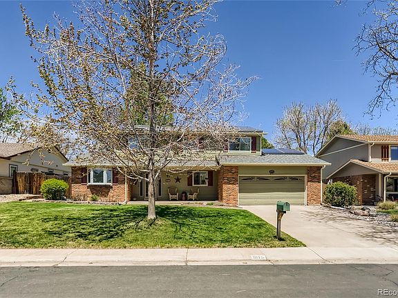Welcome to this Lovely 2 story home in this highly desirable Northmoor Estates neighborhood. South facing, treed lot with spectacular flat back yard with playground equipment, trampoline and small storage building in the rear side yard. Enjoy the main level 5th bedroom which could be great for a home office also. The home was totally remodeled in 2006 with new windows, kitchen cabinets with pullouts in the lower cabinets and granite countertops. A new roof was installed one year ago and wide plank hardwood floors were added recently too. Upstairs you can enjoy 4 bedrooms, a full bath, the primary bedroom has an adjoining 3/4 bathroom and a new ultra quiet whole house fan. When moving to the basement enjoy a large finished entertainment area and a full bath with additional storage area. Very easy to add another bedroom with full egress window in the finished basement. Enjoy the low utility bills because of the solar panels too! Within walking distance to trails, ponds, a canal, open space, Northmoor Park, Broomfield Commons with additional parks, playgrounds, sports fields, dog park, the library and 2 Broomfield rec centers and the Broomfield Bay. Easy access to I-25, 36 and C-470. Minutes away from Louisville and Lafayette which offer many restaurants, shopping and Sheridan and 120th with more shopping and choices of restaurants.