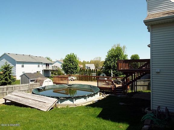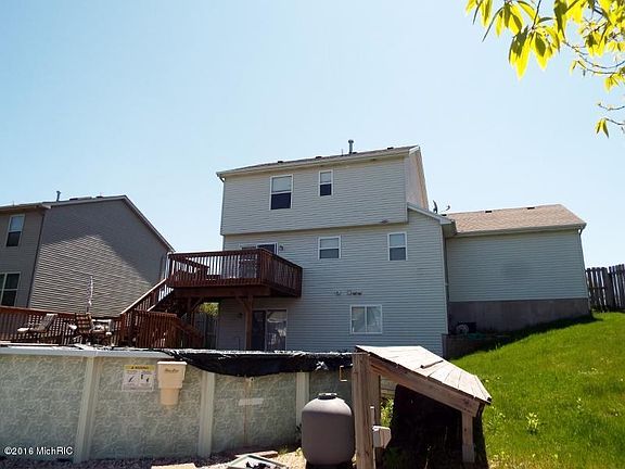 This 3-bedroom, 4-bathroom home has excellent curb appeal. Ideally situated less than one mile from US-131, and just minutes from the M-6 freeway. Featuring an expansive, two-tiered deck and an above-ground pool, the backyard is perfect for entertaining. All three bedrooms are upstairs with the master offering a private master bath. The finished lower-level features a half bath, family room, and walks out to the pool area. Needs some TLC, but would be the perfect place to start earning equity today!