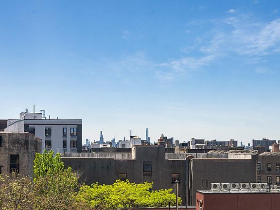 Stunning Views of Rooftops the Manhattan Skyline! Welcome to this beautifully renovated, south- and west-facing one-bedroom home, designed with high-end finishes and thoughtful details throughout. Enter into a spacious double foyer with a walk-in cedar closet, leading into a sun-filled, oversized living room featuring sweeping city views through extra-large windows. The open layout comfortably accommodates both living and dining areas, accented by well-maintained original hardwood floors. The windowed eat-in kitchen boasts double quartzite countertops, stainless steel French door refrigerator, sleek 5-burner stovetop, full-size dishwasher, farm sink, abundant cabinetry, and a custom-built-in dining nook-perfect for relaxed Sunday brunches. The bathroom features a classic original bathtub in excellent condition, a vintage wood vanity with a stone countertop, white subway tile, and a rare bonus window for natural ventilation. A large linen closet is conveniently located just outside. The corner bedroom is a true retreat, with windows on two walls offering views of rooftops and even a peek at Yankee Stadium. With a huge closet and ample light, it's a serene space to start and end your day. This rare exterior-facing unit on the Concourse offers not only exceptional views, but also: Live-in super and attentive porters Keyless intercom entry Recently upgraded laundry facilities Package room and bike storage Pet-friendly building Don't miss this unique opportunity to own a view-filled, move-in-ready home in one of the Bronx's most desirable locations!
