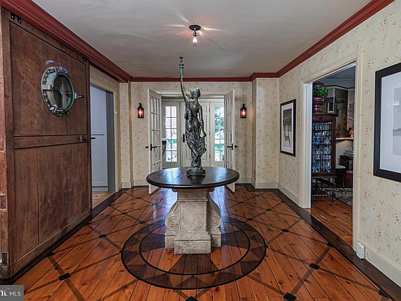 Two of the area’s most seasoned design forces, architect Glen Fries and decorator Judy King, teamed up to enhance an historic property’s best attributes and amend the floorplan to reach the height of its potential for elegant modern living and high-style entertaining. The results are spectacular and full of architectural elements and reimagined fixtures you will never see twice. The largest spaces are also the most frequently used: the chef-ready kitchen with appliances posing as furniture, a concrete island that only gets better with age and a great room expansion featuring a monumental stone fireplace, a wet bar and home theater. Quieter private spaces include a first floor study that looks out onto the stone terrace and a library-like office with a covered balcony basking in blooming tree views. The latter is part of the main bedroom suite loaded with enveloping warmth from hand-hewn beams, artisan and antique doors and grasscloth walls. The boutique-style closet received equal attention to detail. Pretty marble bathrooms serve 3 more bedrooms, one with its own dressing area. Even utilitarian spaces are not to be dismissed, like the mudroom with custom-finished doors or a powder room with sculpturesque sink. Last, but far from least, is the party-perfect, 3-bay, barn-style garage with a half bath and stylish gym/office that spills out to the yard, your own bucolic Eden with an arbored path leading to a sweet fenced garden. At the end of the country-quaint stone driveway, it’s less than 3 miles and a single turn to the center of Princeton with several of the area’s finest schools immediately nearby.