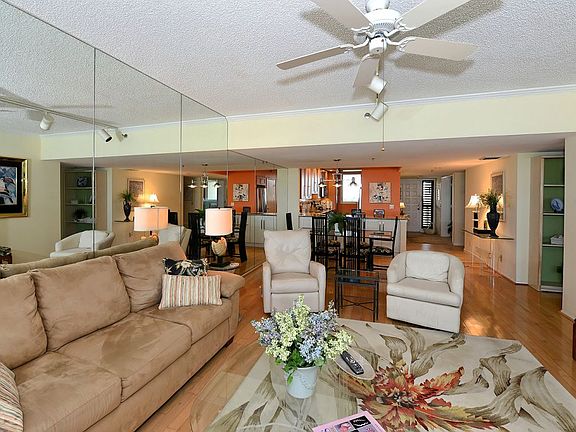 Beautiful hardwood flooring, walls of new windows and sliders (2015), a newer eat-in kitchen and stylish furnishings welcome you to this lovely fifth-floor residence at Beachplace. You will love the sprawling views of the Gulf of Mexico and Beachplace community showcased at every turn. Ready for you to move right into, this two-bedroom beach getaway offers many recent updates, including mirrored walls, upgraded bathrooms, solid-wood cabinetry, Quartz countertops and for added convenience, a built-in planning desk was installed just off the kitchen. The private master suite offers two walk-in closets and direct access to the terrace. Relax on the open terrace and relish evening sunsets as the perfect ending to any day. Beachplace is an excellent, Gulf-front community just a few steps from the turquoise waters of the Gulf. Residents enjoy 24/7 manned guard gate, on-site management, tennis, fitness, a stylish and updated clubhouse, heated swimming pool and spa. Centrally located just a short drive from Longboat Key Club's Islandside and Harbourside facilities, Avenue of the Flowers, St. Armand's Circle and the rich life of downtown Sarasota.