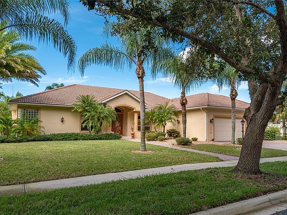 Welcome to Harbour Oaks, a deed restricted community located in Deep Creek, FL featuring exclusive custom homes. This 4 bed + den, 3 and half bath features some of the finest custom designs and quality upgrades you will find. The gourmet kitchen has all stainless steel appliances, reverse osmosis, custom wood cabinets and granite stone counters. Stunning travertine floors throughout the entire home, in addition to travertine stone inlay on the kitchen backsplash. The family room features a built-in entertainment system and sound system, perfect for evening socials and movie nights. Every bathroom has custom tile inlay, additionally master bathroom has a bidet. Indoor laundry room plus a third car garage, ideal for a small workshop or extra storage space. Other upgrades include crown molding throughout, hurricane impact glass windows, fenced-in dog run, a ManaBloc system, and rescreened pool lanai. Enjoy the electric-heated chlorinated pool and spa all year long and when you're ready to entertain, you'll be thrilled to have your very own outdoor summer kitchen and grill. This home is situated on three lots, with beautiful mature landscaping, and a paver driveway. Enjoy your walks on the community's private roads, lined with large, shady oak trees, or join in on a fun game of basketball or tennis in the community park. This home and unique community has so much to offer as you're sure to find out. Schedule your showing today!