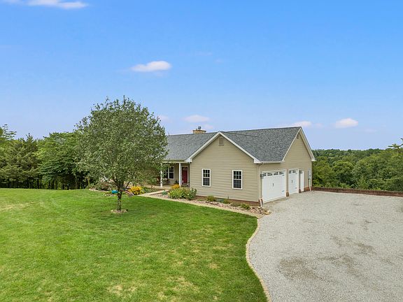 Your tranquil retreat on a stunning 10-acre property awaits! This charming home features 5 bedrooms and 3 baths, with refinished floors that enhance its elegant feel. The partially finished basement is equipped with a cozy wood-burning stove, perfect for chilly nights.