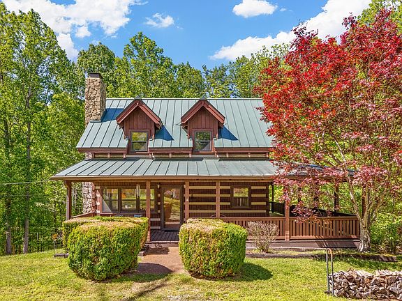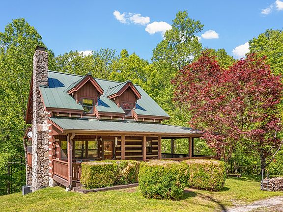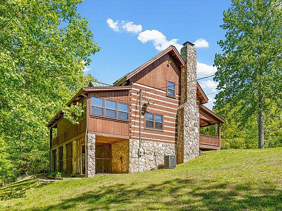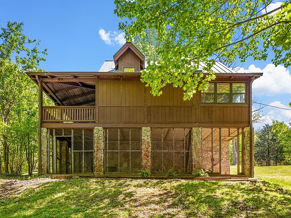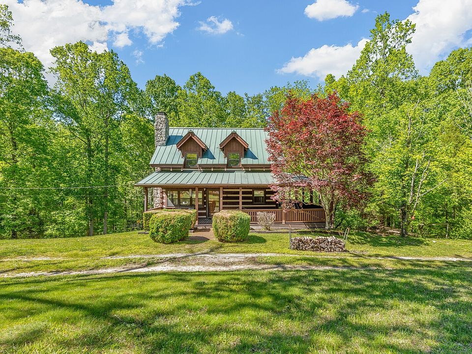 One of a kind! This truly charming, custom log cabin with wrap around porch is nestled on 5 tranquil acres! Bring your animals, as the property is fenced and gated. It features a horseshoe driveway, stunning elevation with metal roof, stone chimney, and dormers. Floor plan is spacious and includes a wood burning stone fireplace, stunning hardwood floors, stainless appliances and custom cabinetry in the eat in kitchen along with soaring a-frame ceilings in the upstairs bedrooms. Basement is partially finished and great as an office or bonus room. An abundance of windows throughout brings the outside in. Enjoy watching the wildlife from the porch or the lower screened in patio. Tons of storage. Come live full time in this quiet retreat or make it a weekend escape. Perfect for writers and nature lovers. Quick access to I-40 and less than 30 minutes from Bellevue shopping and Downtown Nashville. A must see!