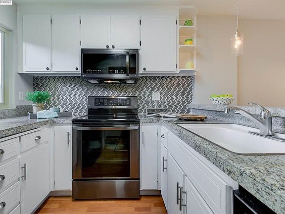 Charming 3 bedroom C-model town home in Garden Isle. Update kitchen. Great morning and afternoon sun! Cozy patio backyard. Open kitchen ,granite counters /tile back splash. Laminate floors & dual pane windows. Good sized master w/ walk-in closet. Lots of natural light. Next to greenbelt. Close to pool, shops, school, SF, Ferry, Google shuttle.