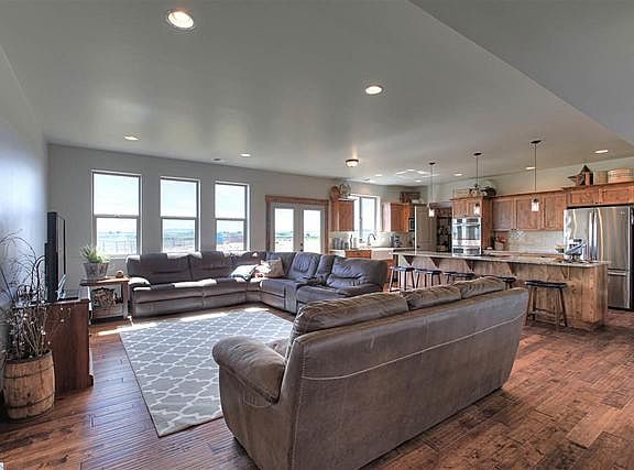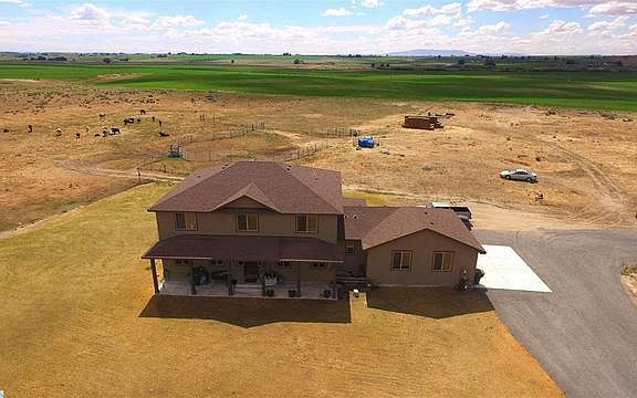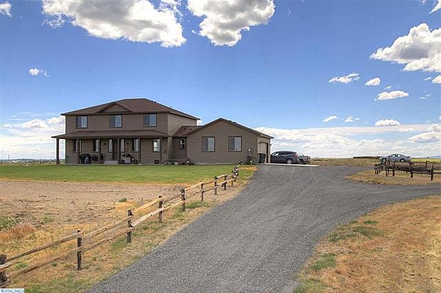 Beautiful panoramic views and peaceful seclusion with this almost brand new 5 BR 4 BA home on 22+ acres in Eltopia! Custom home with great room concept, beautiful wood floors, rustic touches, and granite counters throughout! Big kitchen featuring granite counters, huge island with breakfast bar, farmhouse sink, built-in double ovens, 7x7 walk-in pantry, and spacious dining area! Office, laundry room, and half bath on main-level! Master bedroom on main-level offers private bath with dual vanity, walk-in shower, and walk-in closet! Upper-level has four roomy secondary bedrooms, two full bathrooms, and large loft-style family room! Inviting front covered patio, large freshly seeded lawn, and plenty of space for all your outdoor entertaining ideas! Build our dream shop--400 amp service!