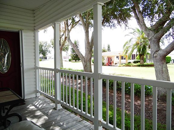 This large triple-wide home has one of the best locations in the community with minimum traffic and maximum view! From the art deco drive to the inviting front porch you are surrounded by golf course views. When you enter through the front door the spaciousness invites you in. Corian countertops and generous cabinet space are a chef's dream in the island kitchen. The dining table compliments the built-in glass cabinet. The bedrooms are large and offer walk-in closets. You will enjoy relaxing in the Florida Room which also overlooks the golf course. You will appreciate all the attention to detail and how well this home has been maintained - including new gutters, downspouts, and tie-downs in 2015, an air conditioner in 2014 and New Roof 2018! Purchase includes ONE-YEAR FREE GOLF. Call to schedule an appointment Today!