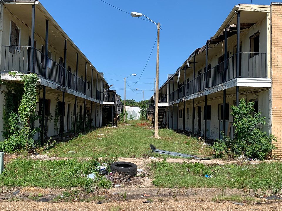 Great Investment Opportunity with Motivated Seller ready to sell off last property- This 36 unit apartment complex was each a 2 bedroom 1 bath unit. Both buildings need a full rehab with one in better shape than the other. The building structure is there and old sheetrock was removed to clean it out. Bring your ideas for this investment property. Parking lot is to the left side. Land parcel has frontage on 3 roads. Property being sold 'as is'.