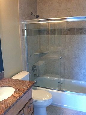 Custom tile showerOne bedroom one bathNew stainless steel appliancesTwo-tone paintGranite countertopsCeiling fans