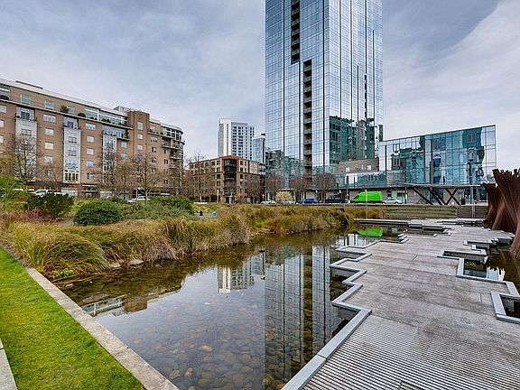 Unit 214-Floor to ceiling windows showcase Tanner Springs Park from exquisite SW corner 2 bdrm/2 bath condo in the much coveted Cosmopolitan.Tall ceilings, Pedini Italian cabinetry, Miele appliances, quartz counter tops, marble bathrooms, gas fireplace, covered patio & more featured in this light filled home. Concierge 24/7, 3 guest suites, community room, fitness center plus other amenities.One deeded parking space(#70)+storage unit on same floor. The Pearl Life - easy, beautiful, urban living.