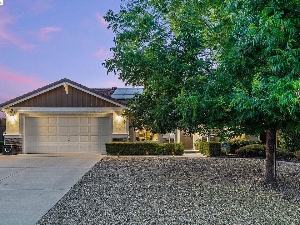 This elegant single floor home with solar power, is located in a desirable neighborhood with no backyard neighbors, close to shopping, dining, schools and public transportation. Enjoy the open floor plan with formal dining and living rooms. A kitchen built for entertaining guests, with brand new stainless-steel appliances and a breakfast bar. A spacious family room and primary bedroom with a walk-in closet. Three other bedrooms make this an ideal residence for a family of any size. The home office is a plus for someone who works remotely. It has a brand-new water heater as well. The A/C and heating units are only 5 years old. Fresh interior and exterior paint. The home has multi layered synthetic flooring, carpet and tile as well as updated bathrooms. It also has a fully landscaped backyard with an automatic sprinkler system. Enjoy the sunset under the retractable sun setter awning with a glass of wine in the backyard while admiring the panoramic view of rolling hills, the golf course, the windmills on highway 12 and the San Joaquin River.