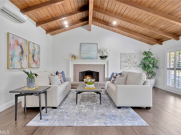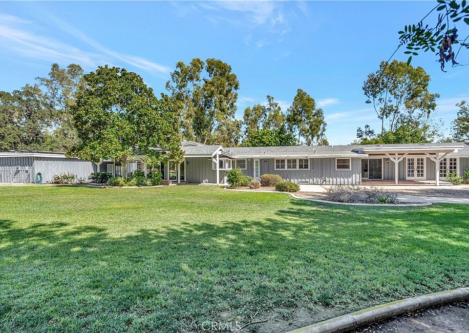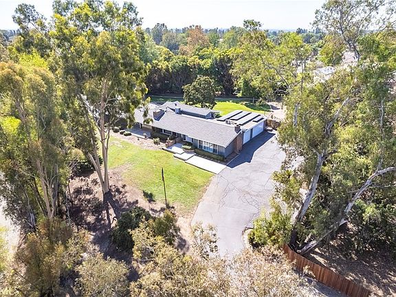 Nestled above and set back from the street, this impressive single-story home boasts a sprawling layout that stretches across its expansive lot. The gently winding driveway leading up to the property imbues a sense of country charm, with ample and well-established trees surrounding you. Upon entering the home, you're greeted by an array of windows that reveal the breathtaking park-like backyard, allowing you to simultaneously appreciate the interior and exterior beauty. The interior of the home features stunning wood beamed ceilings, eye-catching architecture, and plantation shutters, with four rooms featuring cozy fireplaces that exude a warm and inviting ambiance. The primary suite is especially luxurious, complete with an enormous attached office that features built-in cabinetry throughout, a fireplace, and three sets of French doors that lead out to the backyard. The cedar-lined, walk-in closet of the primary bedroom is also impressively sized. The lot, which spans almost one acre (.88), offers plenty of room for just about everything. Currently, the lush lawn stretches across the back of the home, accompanied by a large gazebo with built-in barbeque and bar seating, as well as a spacious and shaded covered patio. The property is adorned with fruit trees, shade trees, and a basketball area, with plenty of space for RV parking. This home features owned solar panels and is conveniently located within walking distance to the Fullerton Loop walking trails and Hiltscher Park, with award-winning schools in close proximity. The seller believes the lot is eligible for a lot split, and a tentative parcel map has been prepared, available for viewing upon request. Buyer to verify eligibility with the City of Fullerton.