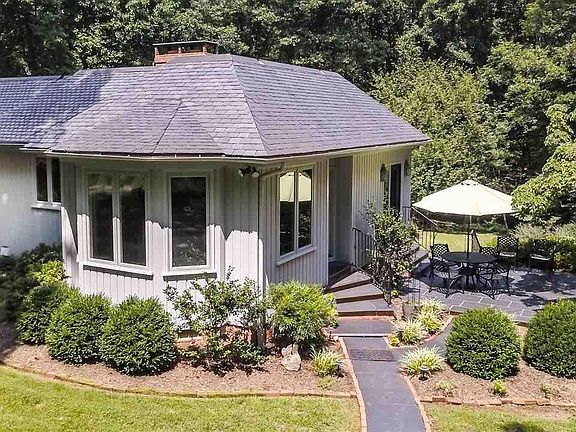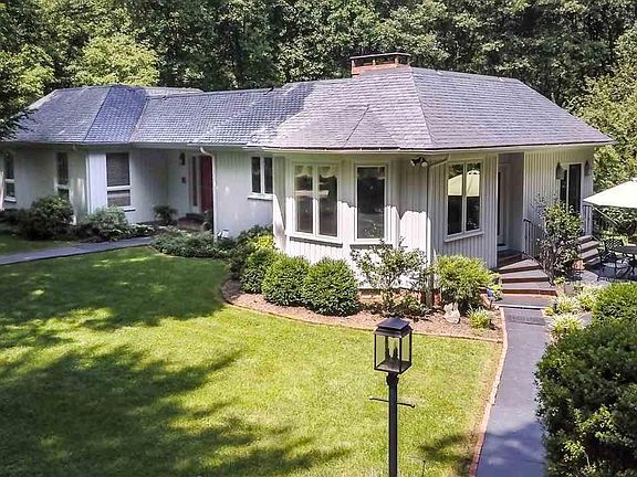 Edgewood is nestled in the woods on 3.4 acres with a large circular driveway, beautiful gardens, slate courtyard & a spacious deck. This immaculate and elegant retreat is located 1.8 miles from the intersection of Rt 250 & Rt 616. The remodeled one level home features a slate roof, upgraded bathrooms, 3 fireplaces, bookcases, two hot water heaters & a kitchen with granite & corian counters. Hardwoods and Buckingham Slate cover the main level bedrooms and light-filled open living spaces. The terrace level has a large walk-out gathering room with huge windows, a brick fireplace as well as a spacious bedroom and full bath. The HVAC was replaced in 2015 and the property includes a barn, potting & storage sheds and carport for 2 vehicles.
