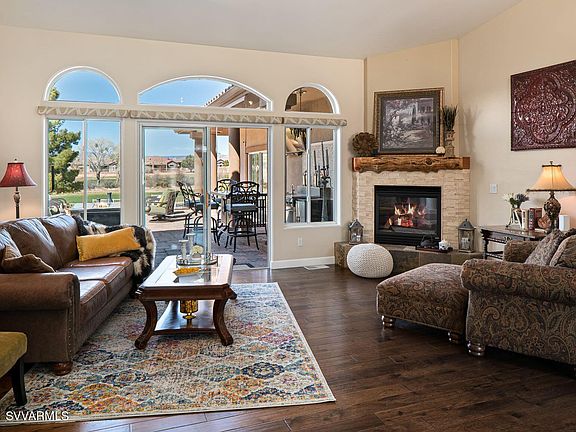 This rare 4100 SF, one level, custom home on .36 acre, is a chef and entertainer's dream. From the commercial upgrade kitchen to the outdoor entertainment area and fire pit w/Mingus Mountain and golf course views, this is the home for you. All the high end appliances: 6 gas burner Viking stove w/grill, 2 each extra Sub-Zero refrigerator and freezer drawers in center island, trash compactor, Vent-a-hood and more. A 3'x18' breakfast bar tops off this entertainment area. Community clubhouse, pool, spa, exercise room and golf pro shop and restaurant with golf discounts for homeowners. Guest ensuite; Spacious Master w/sitting area, wet bar, FP, built ins, provide the lifestyle you are looking for. Situated on Agave Highlands golf course, this home is one of a kind in in Verde Santa Fe.