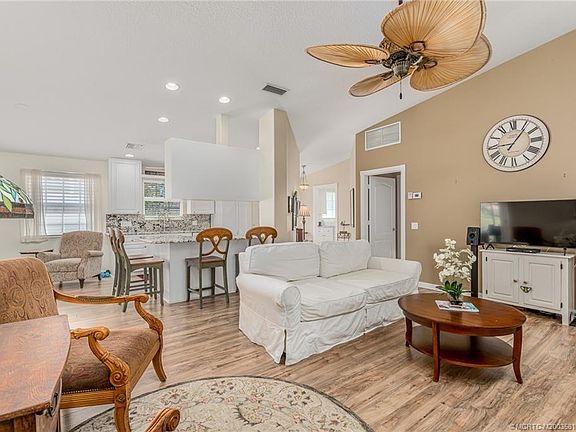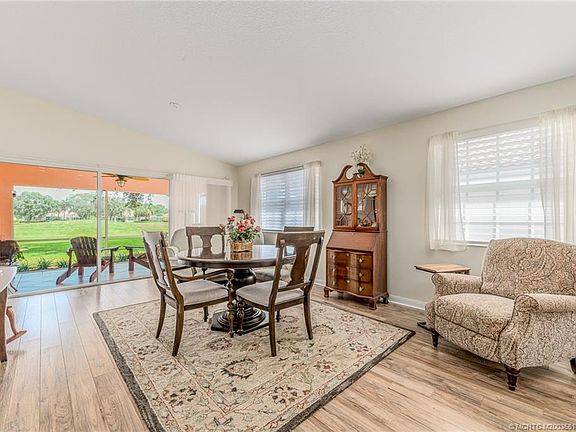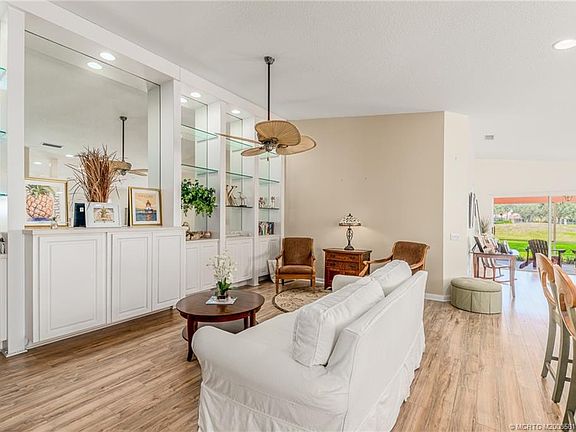 Gorgeous two bedroom two bath two car garage Capri model with amazing lake views and private yard! Light and bright open plan ideal for entertaining and family gatherings! Dreamy kitchen with white cabinets, large breakfast bar, granite countertops and lots of storage. Two large Master bedroom suites both with new luxury Vinyl flooring & walk-in closet with built in closet systems. Private screened in lanai surrounded by native Florida landscaping. This home has complete accordion shutters and the air conditioner is one year new! HOA includes gated entry, lawn and landscape maintenance, Wi-Fi, Internet, cable TV, community pool, tennis and pickle ball. Golf memberships available but not mandatory. Perfect location close to shopping, dining, I 95 and more!
