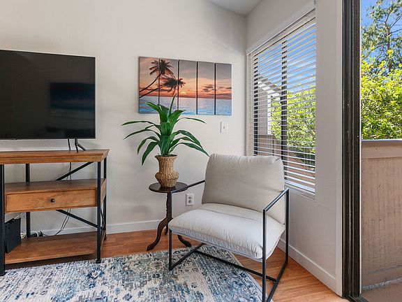 Private balconyBright upstairs unitOpen floor planStainless-steel appliancesRemodeled kitchenIn-unit washer and dryerWalk-in closet