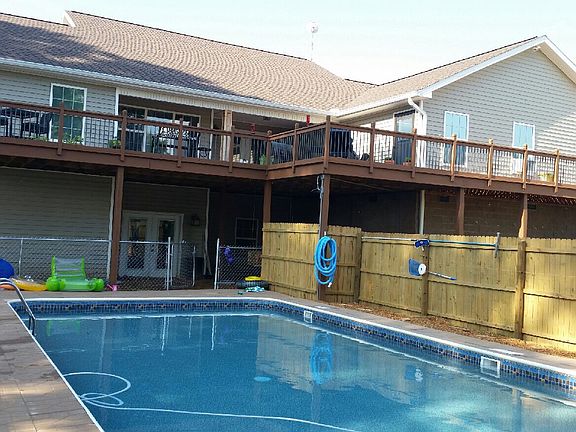 Beautiful custom built farm house sitting on a 6 acre lot. Home features concrete countertops, jacuzzi tubs in master and one other bathroom, awesome wood ceilings throughout and hickory wood floors. Has travertine tile in kitchen and baths. The basement is a perfect man cave or kid retreat. This gorgeous house has a very open floor plan, great for entertaining. Boasts a huge back deck great for grilling and outside dining. Has a 30x50 shop wired with a 100 amp service. The pond was just put in last spring and will be a great fishing spot. Inground swimming pool that is brand new complete with salt water system. A Must See! Master bed room 15x18, bed 2 and 3 are 15x12, bed room 4 is 12x12