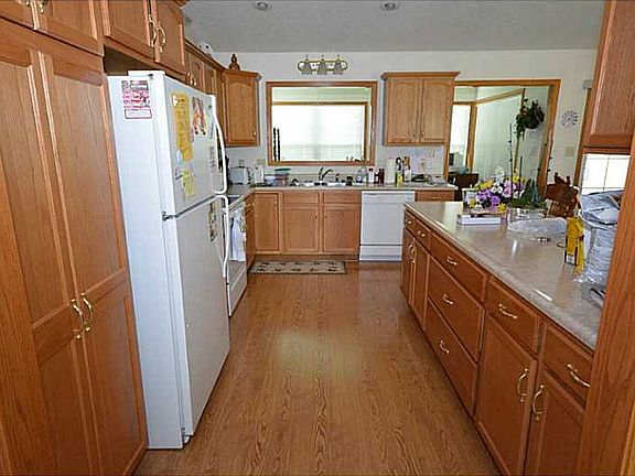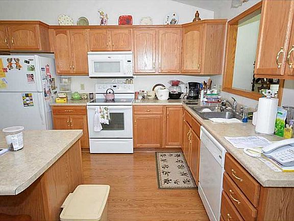 Beautiful zero step entry Ranch in a planned community. The inside of this home offers an open floor plan with split bedrooms. As you walk into the home you will be greeted by a large living, dining, and kitchen area. The kitchen includes plenty of Oak cabinets and a convenient eat-at bar area. All appliances stay. The main bedroom offers an en-suite bath w/grab bars, step-in shower, and a walk-in closet. This home also offers an office and a closed patio with a ceiling fan of the Dining/Kitchen area. The planned community quarterly fee includes snow removal, and mowing.