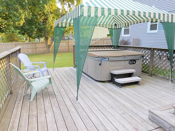 Spacious and bright 6 RM, 3 BDRM Cape with a 24 x 26 garage with 8 ft doors and a HUGE backyard...so you won't mind being on a main road! You'll love the large kitchen with tons of cabinets and counter space. It also has big island w/ granite counter top and it's open to the large dining room...great for entertaining! The full bath has been updated and is on the first floor along w/ one of the bedrooms. The 2 bedrooms on the 2nd floor are enormous with big closets and laminate floors. The 2nd flr bath has room to make into a full bath if the buyer wishes. The basement has an exercise/play room. The outside has a 2 tiered deck with a hot tub. The yard has an above ground pool and 2 sheds which makes it a great place to have gatherings! All at a great price!