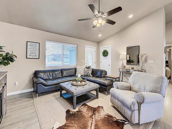 Prepare to be amazed at the turnkey nature of this property! The nearly-new 3 bedroom has a fantastic layout inside with neutral colors. You'll find granite and stainless steel appliances in the kitchen, with pullouts to help with your organizing. The bathrooms have tile upgrades in the showers, granite counters and double vanities. The sliding glass door leads to an outside living area fit for entertaining! Nights around the fire pit are idyllic on the large concrete patio adjoining a fenced backyard with large lawn and concrete curbing. A storage shed, TV antenna and sealed blacktop driveway complete the picture. You can walk to Jim Darcy Elementary and have easy access to I-15. What's not to love!? Listed by Julie Lamb-Heller.