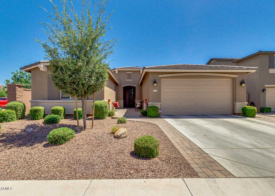 GORGEOUS 4 bed, 3 bath Fulton Home in the highly sought-after Queen Creek neighborhood of Ironwood Crossing! From the curb, you will enjoy a beautiful single story layout with modern architecture on a well cared-for corner lot. Enter into the foyer and be greeted by the open-concept living space, where the family comes together from the split floor-plan design. The kitchen is equipped with stainless steel gas appliances, Maple cabinets with upgraded crown molding, BEAUTIFUL granite countertops, & convenient island with breakfast bar. Master has on-suite with dual sinks & separate soaking tub & step-in shower, & a huge walk-in closet. You will love the spacious backyard with covered travertine patio, seating areas, & a refreshing like-new blue pool! The perfect family/getaway home!!