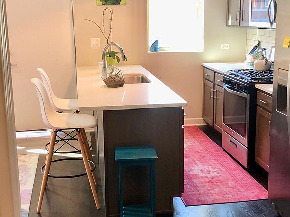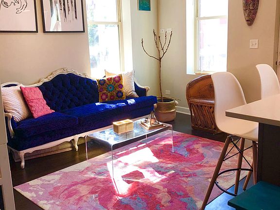 RARE LITTLE ITALY/ UIC FIND! Sublet NOW until May 1, 2019 w/ NO DEPOSIT REQUIRED. (Option to renew May 1 avaliable) No pets. No smoking. Garden level in-door storage available. Carefully & tastefully total gut renovated Carriage home 1 Bed/ 1 Bath top floor apartment with private entrance renovated with modern luxury. Available furnished or unfurnished. In-unit washer/dryer with dedicated parking included! HARDWOOD FLOORS throughout, custom blinds, quartz countertops throughout kitchen. Open floor plan and 15 FOOT CEILING offers magnificent natural light in everywhere. Enjoy entertaining in the trendy kitchen with quartz countertops, full power range and oversized island or out on the large top floor private balcony deck. Walk out the door to your private terrace equipped with both electric and solar powered lighting. Relax in the comfort of the beautiful bedroom with large closet equipped with shelving and ability to customize. Modern finishing with floor to ceiling tiles give a spa like feel to the bathroom Onsite garden level storage available. 5 minute walk to Blue Line, 2 minute walk to buses, 5 minute walk to Target 10-15 minute walk to the West Loop and grocery stores $50 Application fee and background check.