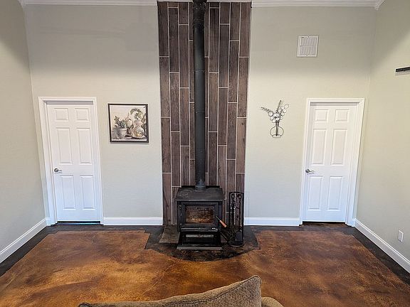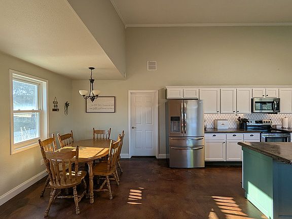 *Update* Home had some wind damage from a recent storm. We will be putting a new metal roof on the home in the next couple weeks. Extremely private country setting, but less than 5 minutes to grocery store, gas stations, restaurants. This home is at the end of a private drive, so there is no through traffic. Surrounding fields and forest make this property feel much larger than it is. Slab foundation, with beautiful stained concrete floors though the home. 800 square foot home theater, bar, entertainment area for all the football games! All electric appliances, including heat pump, however wood stove will easily heat the entire home. The 40x72 shop (with 14' ceilings and a 12' tall door), has an automotive 2 post lift, and small climate controlled office. Private well, fiber internet (1 Gig). Insulated vinyl siding and composite roof.