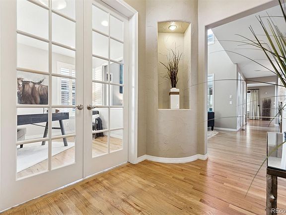 Discover an extraordinary residence in the coveted Hearth neighborhood of Highlands Ranch! This well-maintained 5-bedroom, 6-bathroom home boasts over 5,400 square feet and is located on a serene cul-de-sac, backing onto pristine open space. The classic courtyard-style design artfully blends indoor and outdoor living, enhanced by four inviting outdoor spaces. A grand foyer welcomes you into elegance. The thoughtfully designed study features a look-through to the sunlit living room, which impresses with soaring 2-story ceilings. The enchanting outdoor courtyard boasts a stone-framed fireplace and flows seamlessly into the formal dining area and the inviting family room, perfect for entertaining. The family room, with its cozy fireplace, overlooks the backyard and stunning open space views. The gourmet kitchen is a chef’s dream, featuring 42" cherry cabinets, a center island, walk-in pantry, granite countertops, and a butler’s pantry. The lavish master suite includes a private balcony, spa-like bath, customized walk-in closets, and an en-suite bonus room. The fully finished walkout basement is an entertainer's paradise, featuring ample space for gatherings, a large bedroom with its own 3/4 bath, a powder room, and an expansive entertainment area with billiards space and a wet bar. Additionally, the location offers convenient access to Paint Brush Park, South Ridge Recreation Center, playgrounds, top-rated schools, numerous biking, hiking, and walking trails, as well as nearby restaurants, grocery stores, a pharmacy, and Park Meadows Mall just minutes away. Schedule your private tour today.