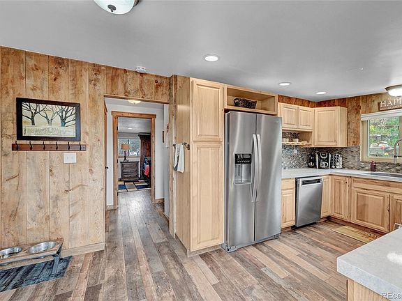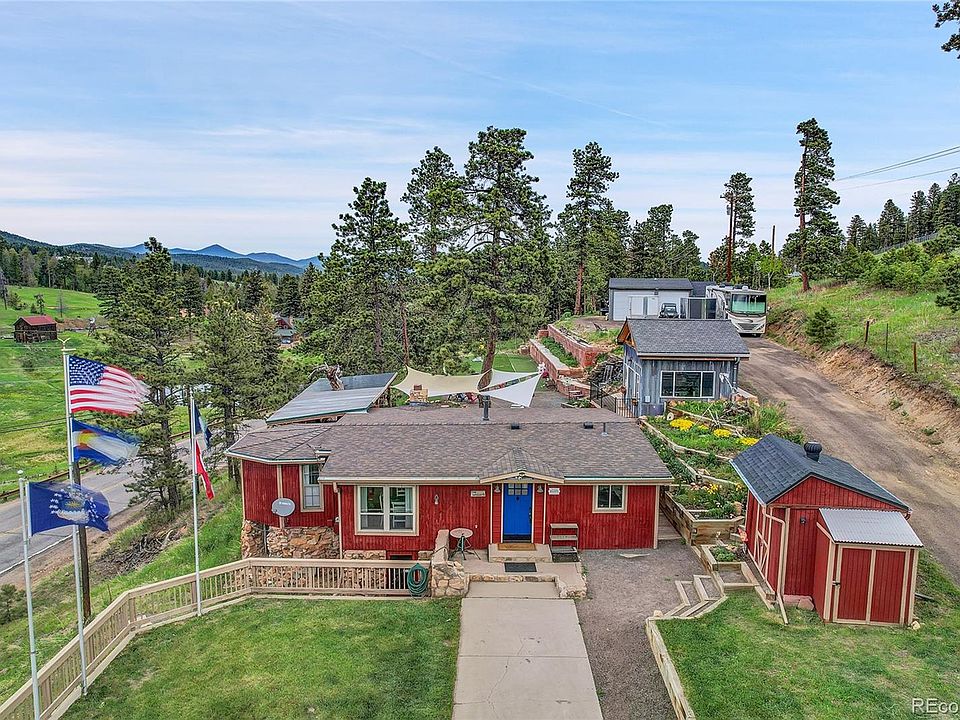 WELCOME HOME TO THIS FABULOUS MOUNTAIN RETREAT WITH FULL SOUTHERN EXPOSURE!!! STEP INSIDE THIS LIGHT, BRIGHT AND OPEN MODERN RANCH WHERE YOU WILL FIND THE GORGEOUS KITCHEN WITH HICKORY CABINETS, ENGINEERED STONE COUNTERTOPS, AND STAINLESS STEEL APPLIANCES. LARGE LIVING ROOM WITH WOOD BURNING FIREPLACE, DINING AREA, BEAUTIFULLY REMODELED FULL BATH, SPACIOUS PRIMARY AND SECONDARY BEDROOM, CUSTOM BUILT-INS, FEATURES AND RUSTIC LAMINATED FLOORING THROUGHOUT MOST OF THE MAIN FLOOR. HEAD DOWN TO THE BASEMENT WHERE YOU'LL FIND AN ADDITIONAL BEDROOM, AND LAUNDRY/UTILITY ROOM WITH WALKOUT ACCESS. THIS AMAZING PROPERTY HAS SO MUCH TO OFFER AS YOU MAKE YOUR WAY OUT BACK TO THIS ENTERTAINER'S PARADISE!! FULL BUILT-IN OUTDOOR KITCHEN, HUGE COVERED DECK AND CONCRETE PATIO WITH VIEWS, FIREPIT AND TONS OF ADDITIONAL BEAUTIFULLY LANDSCAPED TERRACED GROUNDS INCLUDING WATERFALL, FLOWER BEDS GAZEBO AND MORE. HEAD UP TO THE HEATED OFFICE/FLEX SPACE AND THEN ON TO THE 1200+SF GARAGE AND WORKSHOP. PLENTY OF PARKING AND STORAGE FOR ALL YOUR TOYS!! CONVENIENTLY LOCATED NEAR HWY 285, A SHORT DISTANCE TO AMENITIES, SCHOOLS AND 20 MINUTES TO C-470. THIS IS THE ONE YOU'VE BEEN WAITING FOR!!