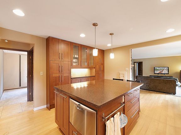 Expansive custom-built rambler on private cul-de-sac with easy access to Nine Mile Creek and Minnesota River trails. This Mid-Century-Modern designed gem offers an open concept layout with a remodeled kitchen that is open to the main floor family room with a fireplace and sliders to the deck. There are three bedrooms on the main level, one of which is the primary w/ updated ensuite 3/4 bath. The other two bedrooms share an updated full bath. A formal dining and living room complete this fabulous main floor. The lower level has a large recreation room with the walk-out to the patio & yard, the 4th bedroom, and a 3/4 bathroom. The workshop along with laundry & tons of storage are all on this light and bright spacious level. All of this on a private 3/4 lot make it the perfect place to call home.